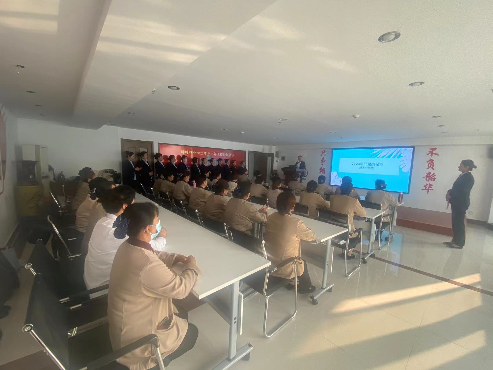 為弘揚(yáng)服務(wù)精神、工匠精神,進(jìn)一步提升員工職業(yè)技能及業(yè)務(wù)素質(zhì)能力,展現(xiàn)物業(yè)服務(wù)行業(yè)的專業(yè)形象和精神風(fēng)貌,山東坤峰物業(yè)管理有限公司于近期組織舉辦2023年公建類保潔技能比武大賽,各項目部經(jīng)理分批抽調(diào)業(yè)務(wù)精英、技術(shù)能手70余人于10月14日和10月21日到達(dá)山東坤峰物業(yè)總部參加比賽。